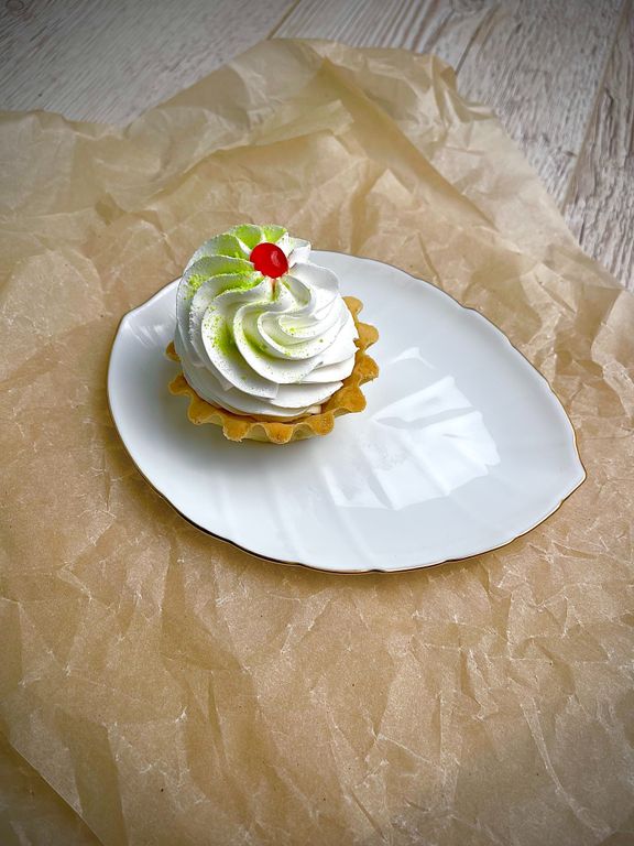 Нежный песочный полуфабрикат в виде корзинки заполнен яблочным повидлом и отделан традиционным заварным белковым кремом. В коробке 9 шт.